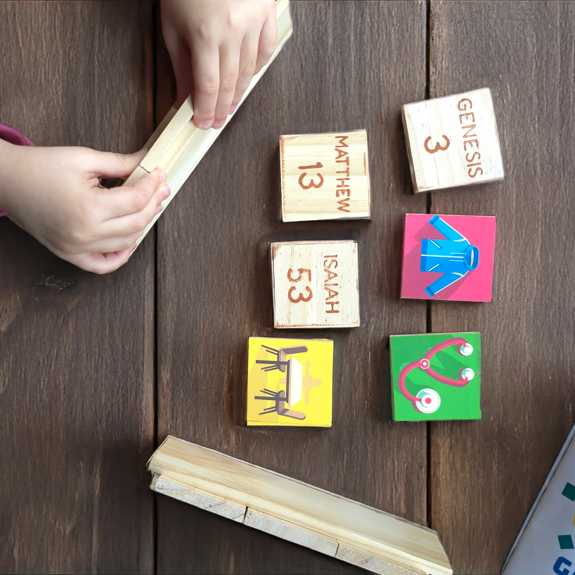 One Gallery bag comes with two full sets of 20 laminated wooden picture tiles each stored in smaller bags (that's a toal of 40 tiles!), 32 custom tile covers, 2 wooden trays, and a booklet with instructions and stories.